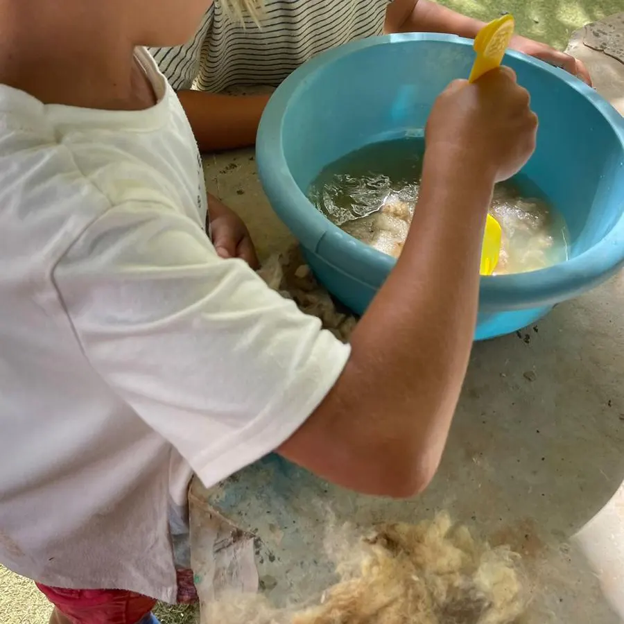 Vamos tocar na lã, aprender a tosquiar , lavar, cardar e fiar.
